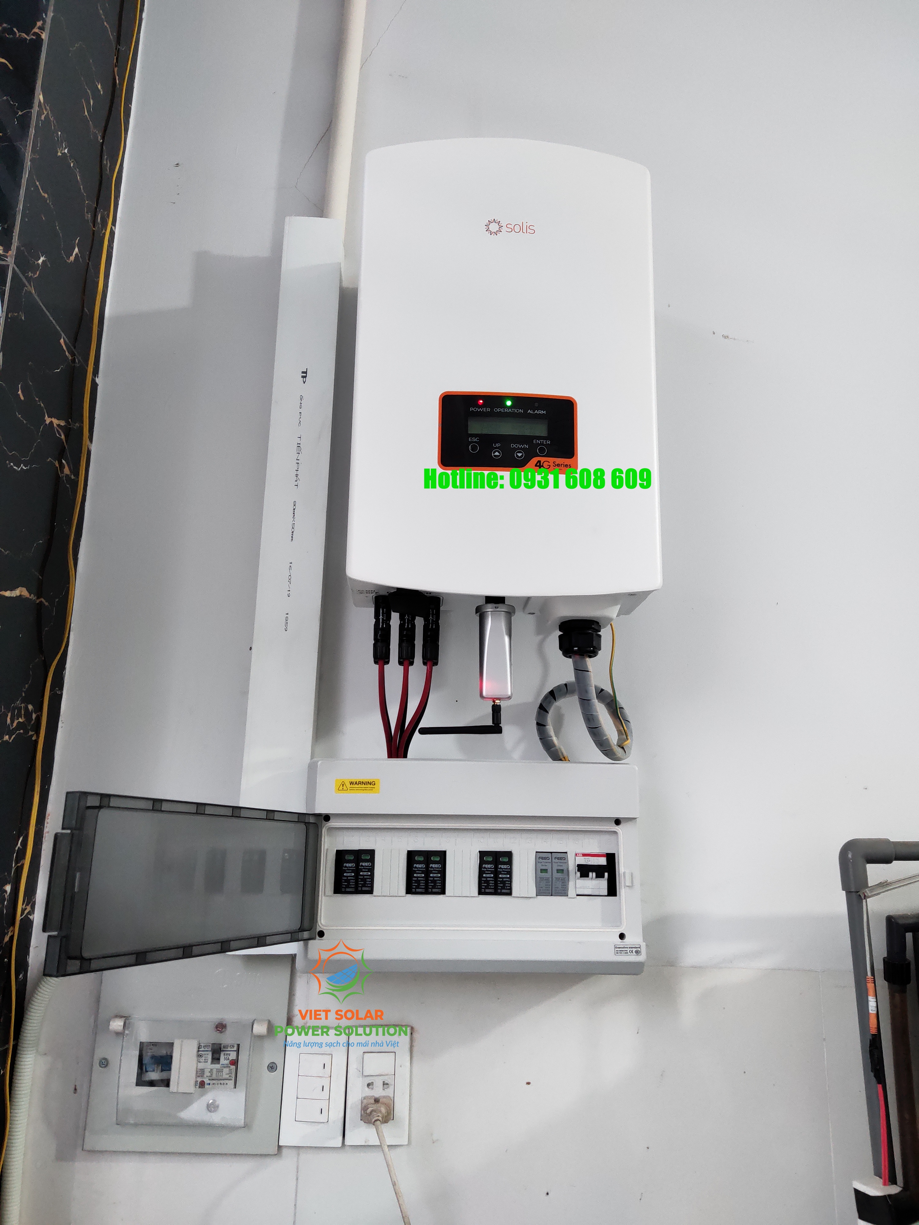 - 1 Inverter SOLIS 10kw, 1 pha (kết nối wifi và giám sát hệ thống trực tiếp trên ứng dụng điện thoại).
